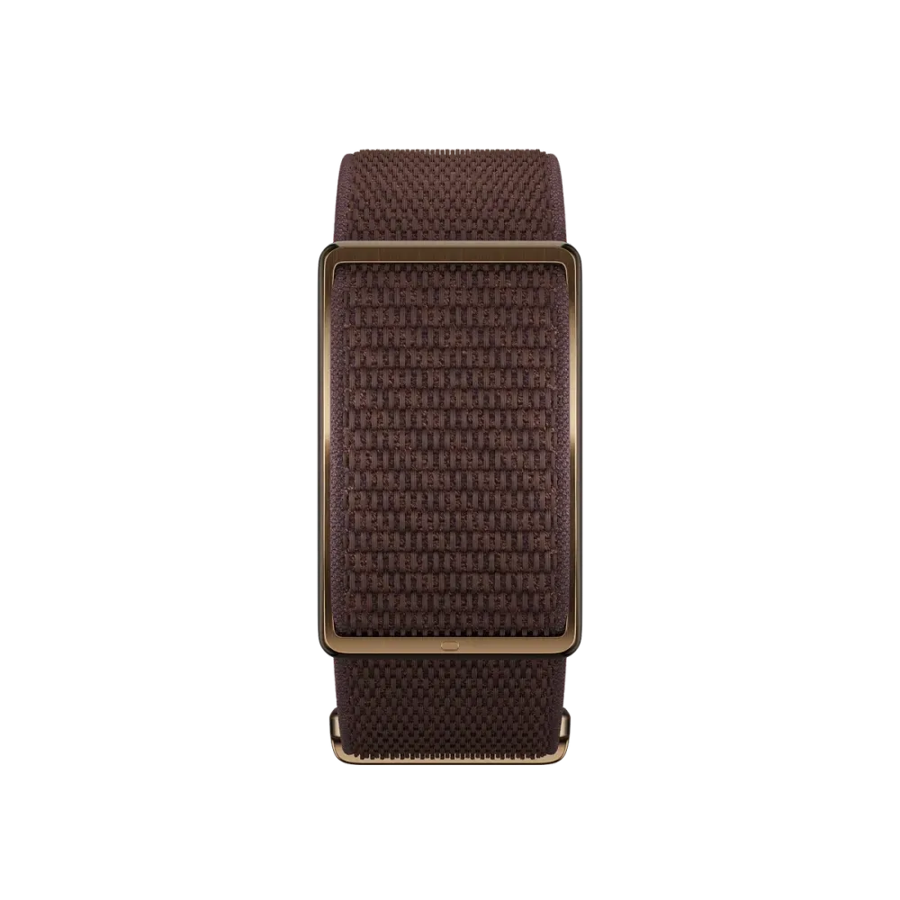 This device is designed for distraction-free daily wear and uses a lightweight textile strap with a slim buckle, suitable for sleep and compact enough to pair with your regular watch. It has an interchangeable design to allow users to switch styles without replacing the device.